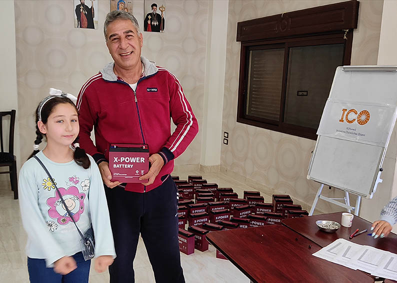 Das "Relief and Development Committee" der syrisch-orthodoxen Pfarre von Tartus in Syrien konnte kürzlich 200 kleine tragbare Batterien zur Stromerzeugung an ebenso viele bedürftige Familien verteilen.